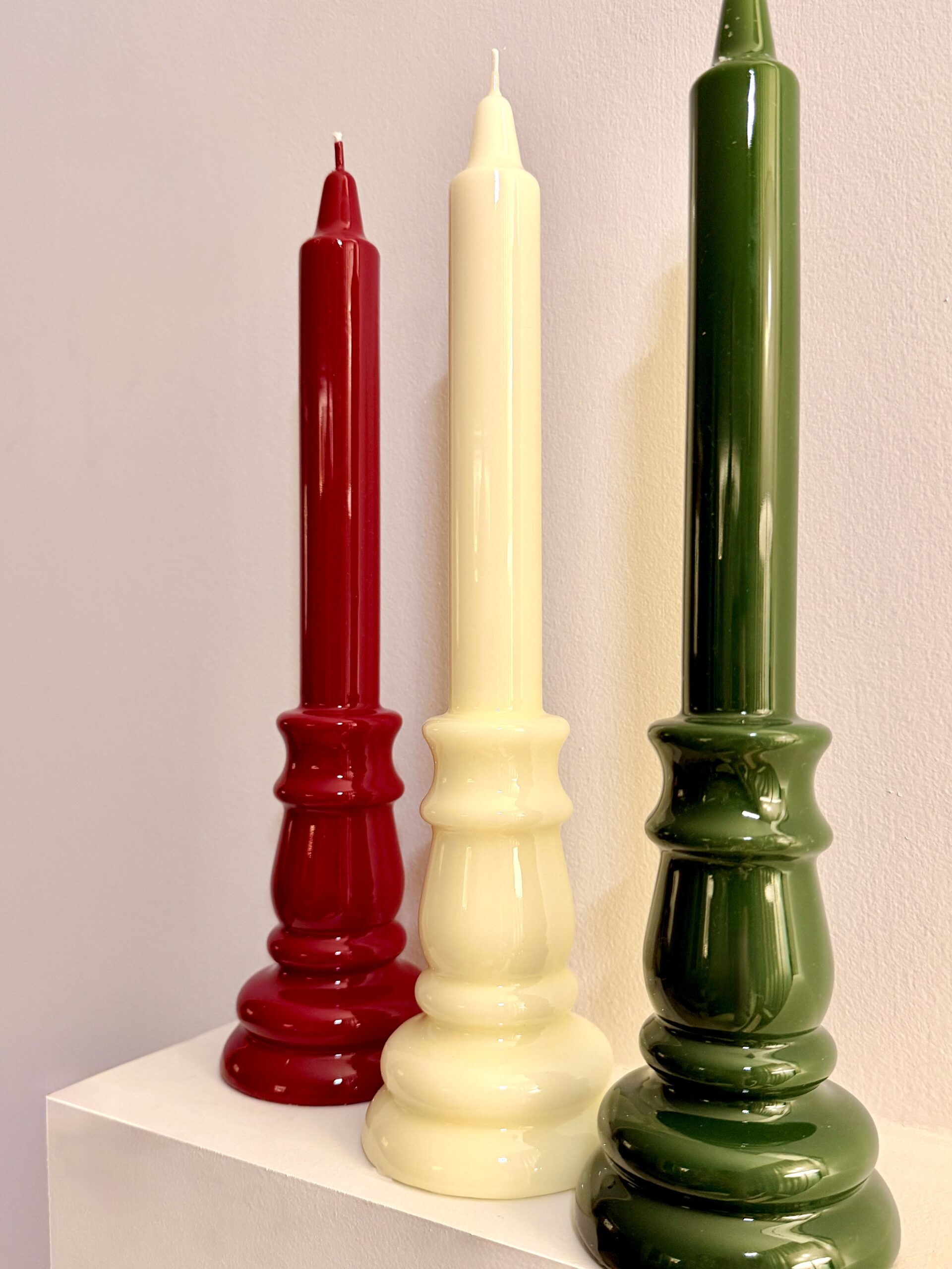 Bougie chandelle avec un bougeoir intégré 100% cire ivoire, idéale pour compléter votre décoration des fêtes de fin d’année.